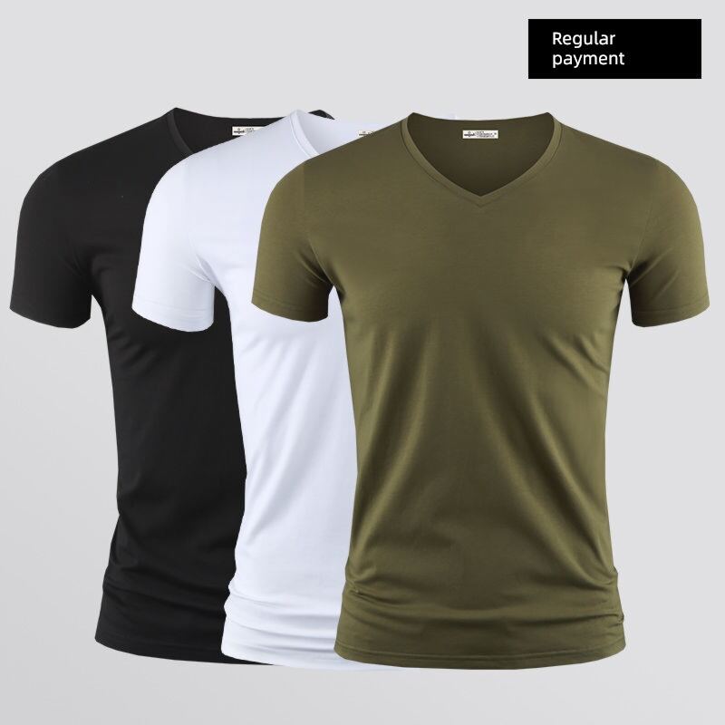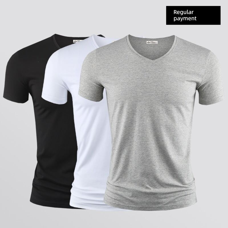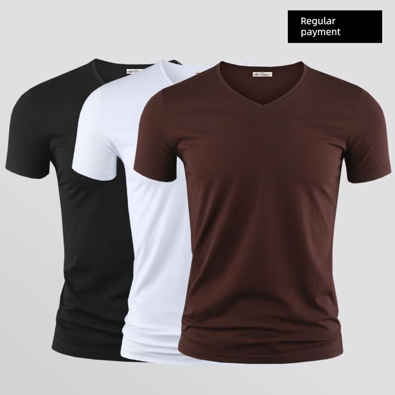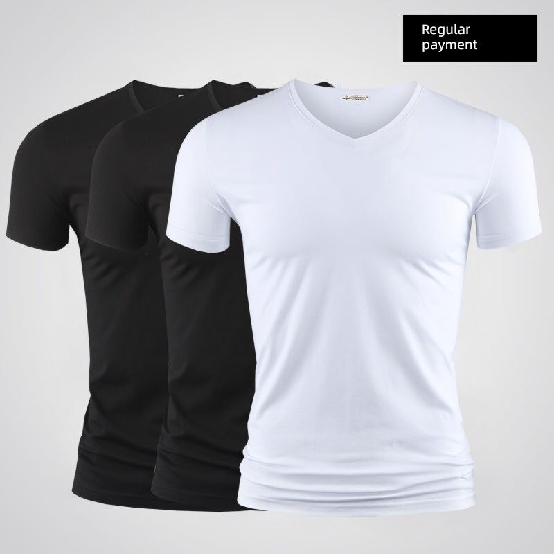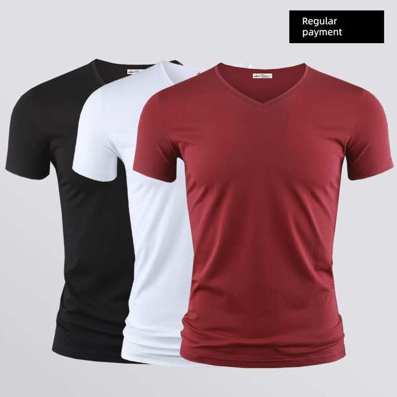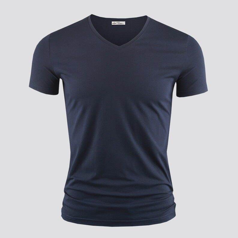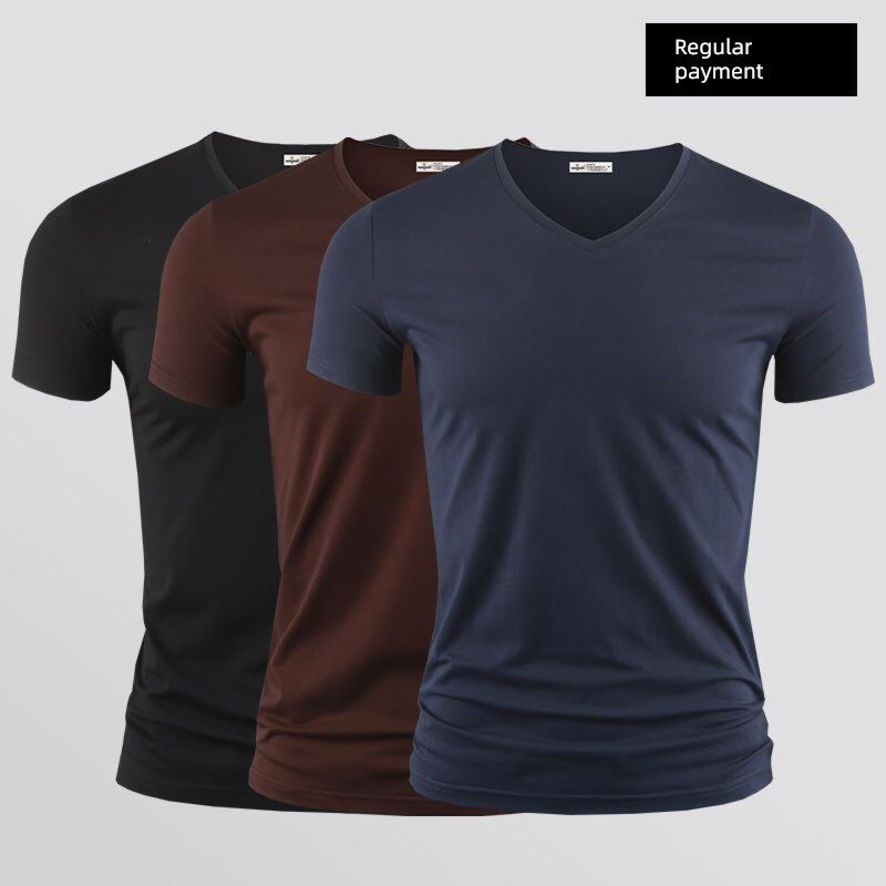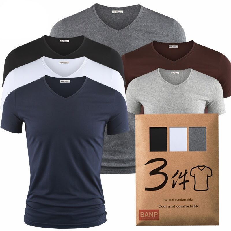 Modal Men's Solid Color and V-neck Slim-Fit Ice Silk Short Sleeve Shirt