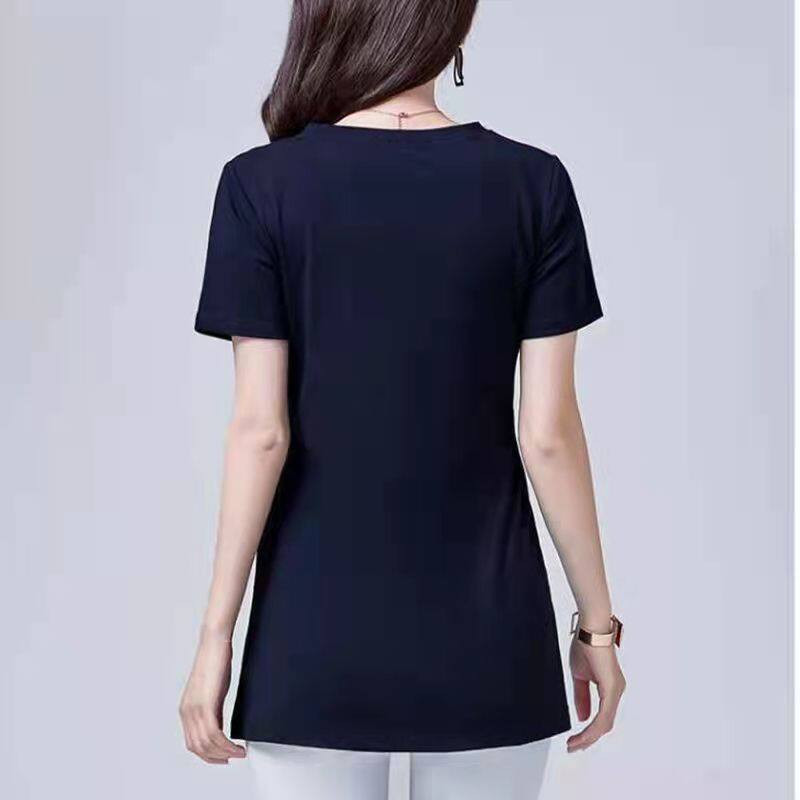 100KG Fat Female Can Wear 2022 New Korean Stripe Long T shirt Women Short Sleeve Plus Size Cover belly round neck fashion t-shirt dress elegant blouse women Tees