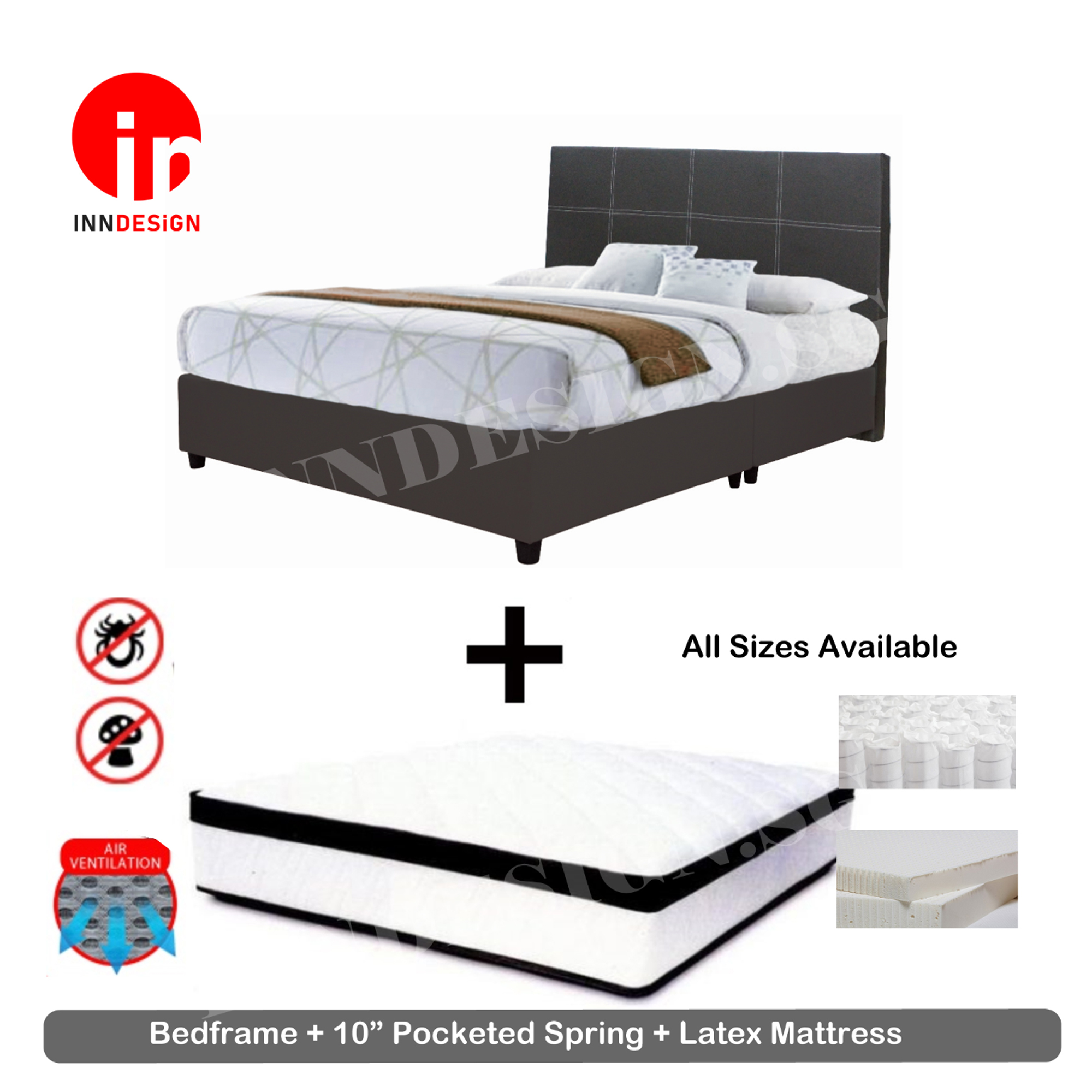 [COMBO SET] 10inch Pocketed Spring With Latex Mattress + Bedframe (10 Years Warranty) [ALL SIZES AVAILABLE]